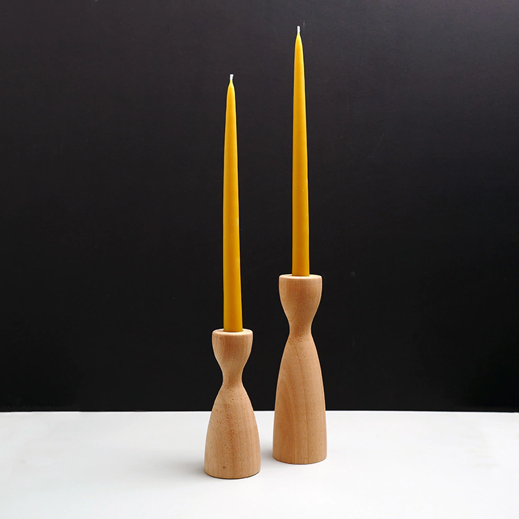 Par de velas para candelabro hecha 100% de Pura Cera de Abejas, filtrada naturalmente y con mecha 100% de puro Algodón. Elaborada mediante la técnica tradicional de inmersión reiterada logrando un modelo estilizado hecho 100% a mano.